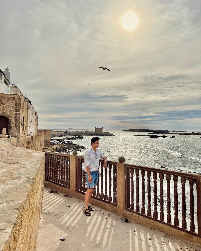 We are on our way to Essaouira (which is a place hard to spell as I am writing this lol). It is a port city, and I think I am dressed correctly for it. However, Marrakech weather doesnt agree? Oh well, I wear beach ootd for the beach – appropriate.