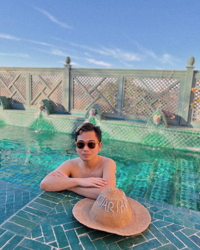 The city greeted me with pinkish buildings and if Im not mistaken lots of palm trees. Afterwards, we entered a lovely oasis – the riad. Everything felt so exclusive and beautiful. As expected, we took a lot of photos everywhere!!! At this age now I try to be swift in shooting and posing (I really try). Splash to the pool on a golden hour right after!