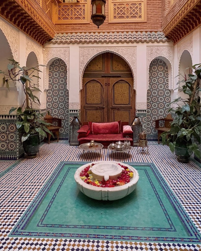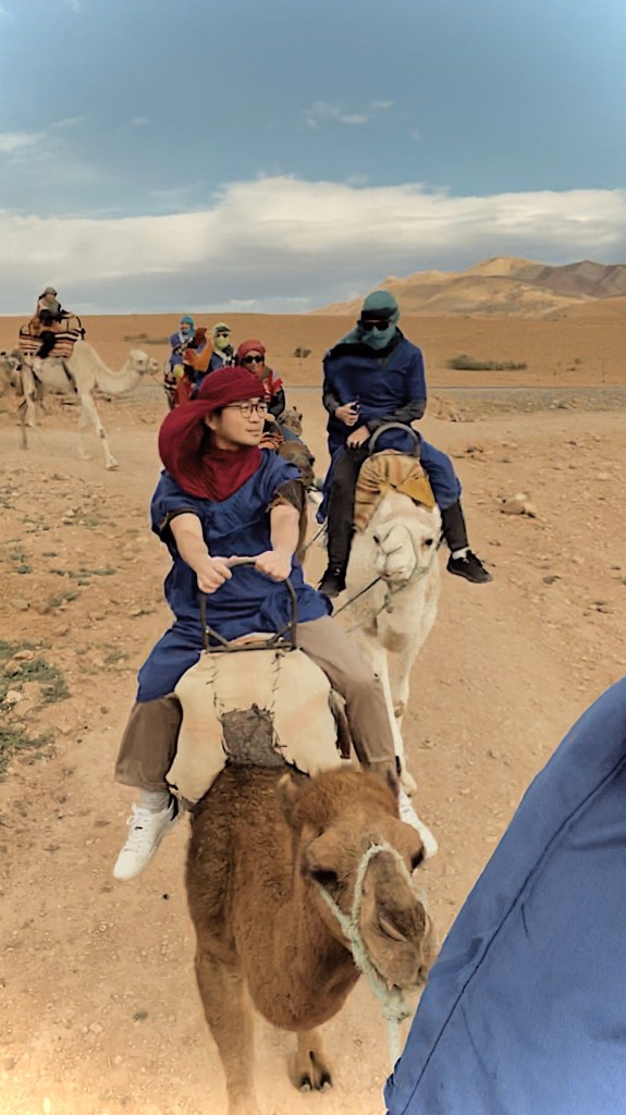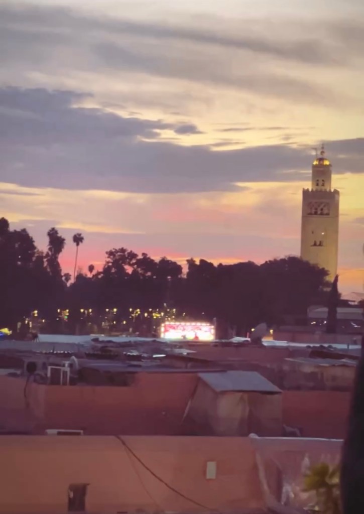 Reflecting on yesterday’s Marrakech walking tour, there were two poignant moments I felt so immersed in the place, people and culture. One is a silent sit down in one of the rooms in Madrasa. It used to be a Quoran school with beautiful intricate floor and wall designs (typical of Morocco). We spent about 20 minutes there, almost silent, but never completely quiet. With my mouth always open. The second moment was a dinner and drinks at Cafe Glacier rooftop overlooking a Koutobia sunset. It was a perfect setting to see the locals’ reaction to winning their slot to Fifa 2022 World Cup semi-finals against Spain. It just felt very festive and celebratory.